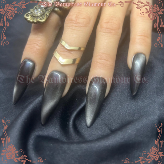 Fumée Noire — Black Smoke Cat Eye Luxury Handcrafted Glamour Magick Gel Press-On Nail Set