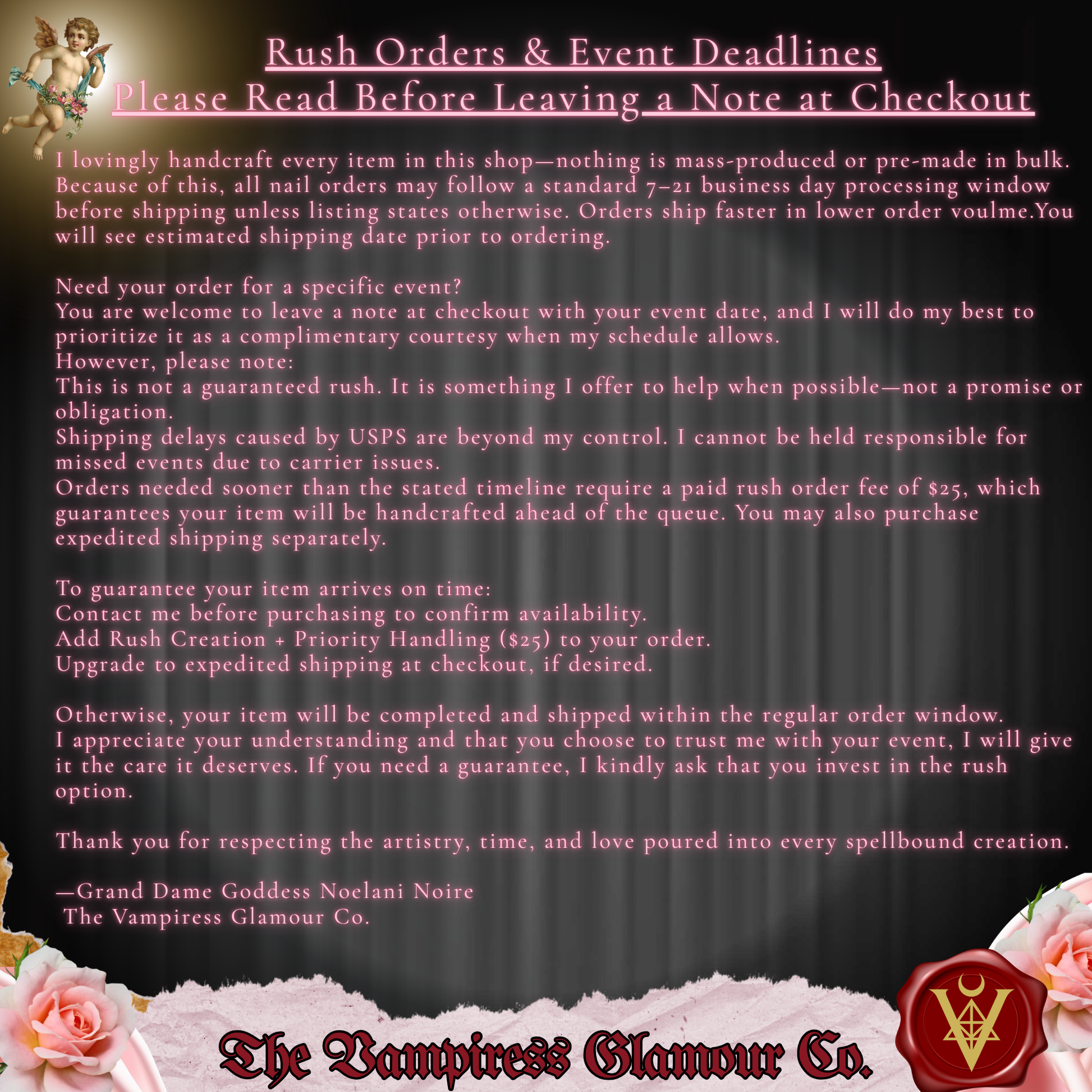 • 10 hand-painted press-on nails, ritually dressed and sealed with sigil magick