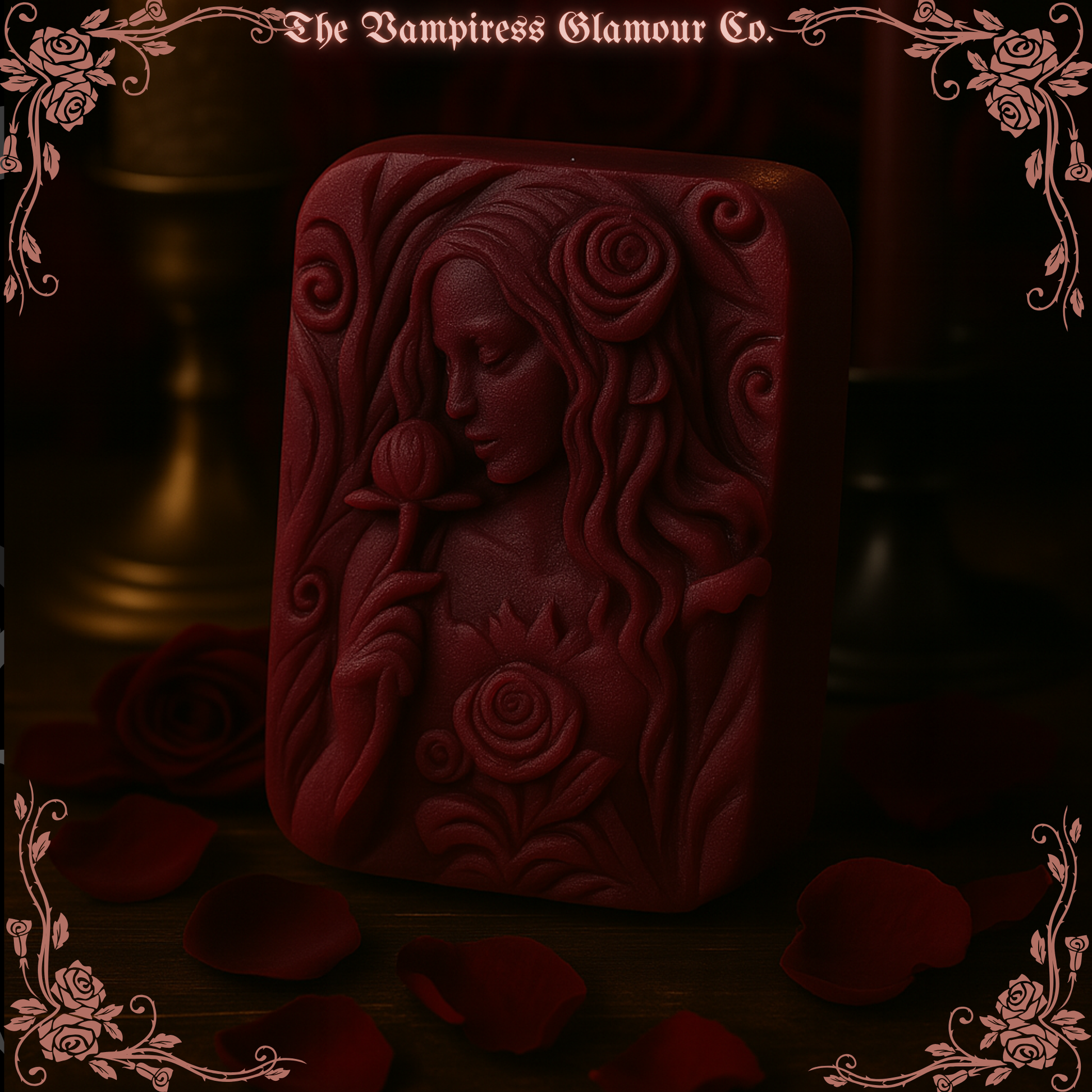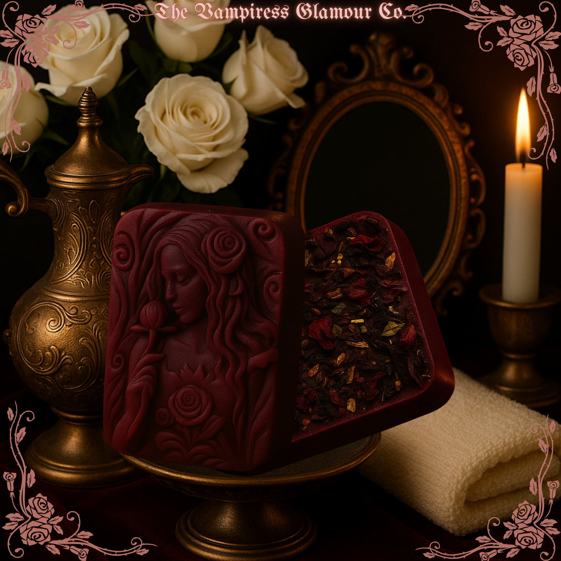 Each bar is infused with The Vampiress Glamour Co. Herbal Blend, a proprietary infusion including roselle petals and damiana, botanicals sacred to lust, confidence, and glamour. Together, they enhance self-seduction, stimulate desire, and magnetize your aura with the energy of irresistible attraction.