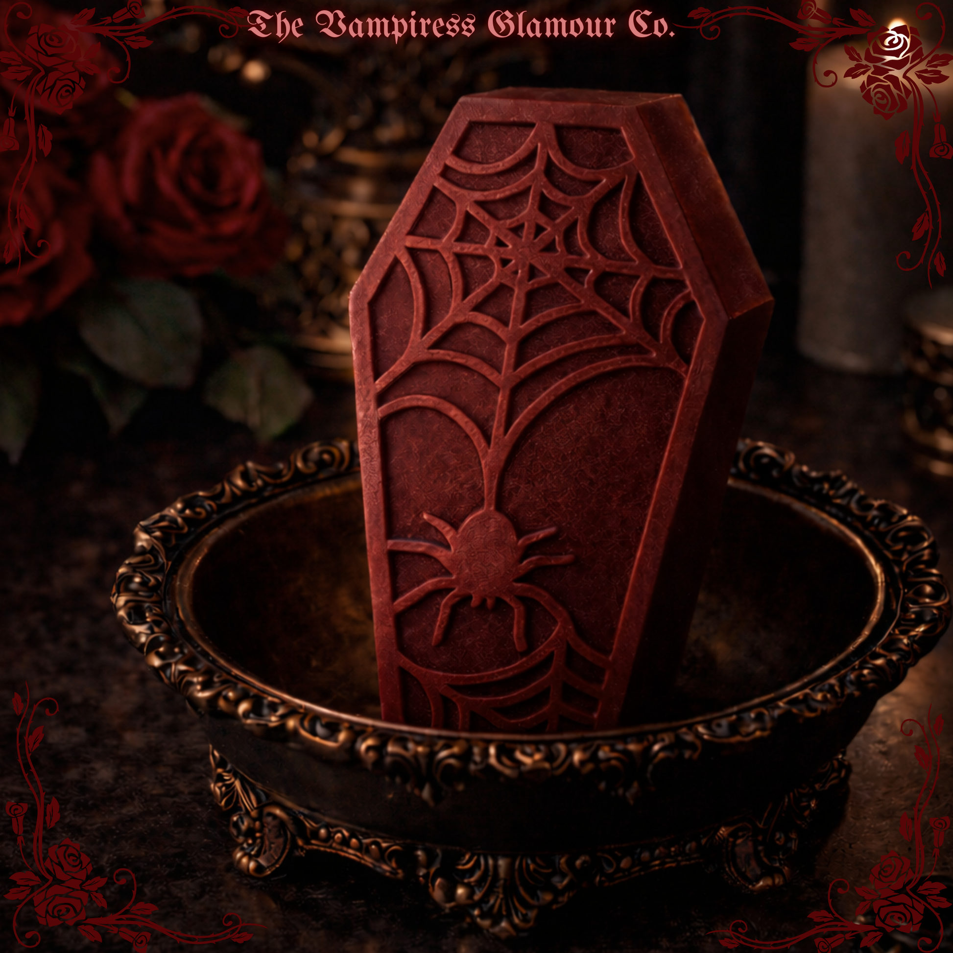 Aqua (Water), Glycerin, Sorbitol, Olive Oil*, Coconut Oil*, Stearic Acid, Shea Butter*, Isoamyl Laurate, Sodium Hydroxide, Avena Sativa (Oat) Protein, Titanium Dioxide, Sodium Chloride, Tetrasodium Glutamate Diacetate, Citric Acid, Cherry Essential Oil, Frankincense Essential Oil, Myrrh Essential Oil, Vanilla Essential Oil, Fragrance Oil, The Vampiress Glamour Co. Proprietary Herbal & Botanical Spell Blend