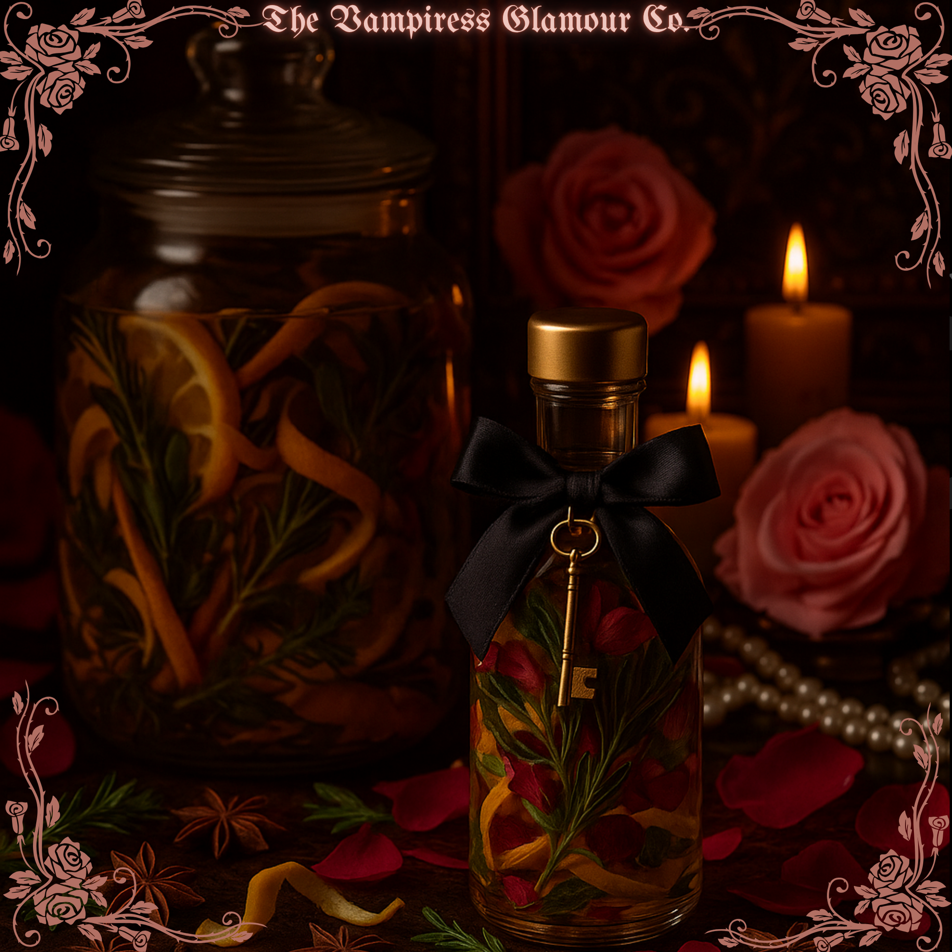 Each batch is enhanced with The Vampiress Glamour Co. proprietary Florida Water herbal blend — a secret fusion of sacred botanicals including angelica root, rue, and other ancestral herbs chosen for power, cleansing, and protection.